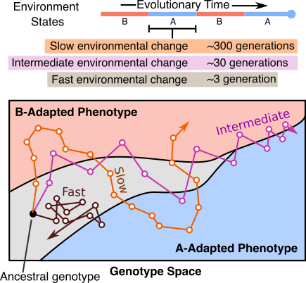 In chapter one of my dissertation, we highlight a process where evolving lineages find and localize on areas of the genotype space that are located between two phenotypes in changing environments. This process, which we are calling dynamic localization, promotes evolvability by providing the population quick mutational access to alternative phenotypes. In this project, we work out the theoretical conditions (specifically, the values of mutation rate, population size, and the rate of environmental change) under which populations are likely to show such localization using a recently developed analytical formalism. Additionally, we use computational simulations on real biological landscape data to predict the structural features of areas of a genotype-phenotype map that harbor this localization.